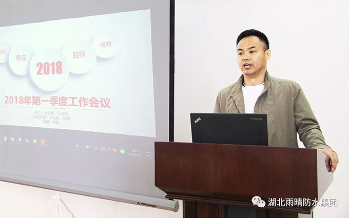 會(huì)議進(jìn)行第三部分,市場部王經(jīng)理對(duì)第一季度工作成果及問題做出了詳細(xì)的陳述與解析,進(jìn)行總結(jié)回顧。然后從行業(yè)前景、需求分析、解決問題及可能性分析等四方面對(duì)防水行業(yè)發(fā)展趨勢做出了深刻的解讀,列出了目前防水行業(yè)存在的機(jī)遇與挑戰(zhàn),并對(duì)下階段工作進(jìn)行了計(jì)劃安排。夢想的道路任重而道遠(yuǎn),勉勵(lì)大家合作共贏。